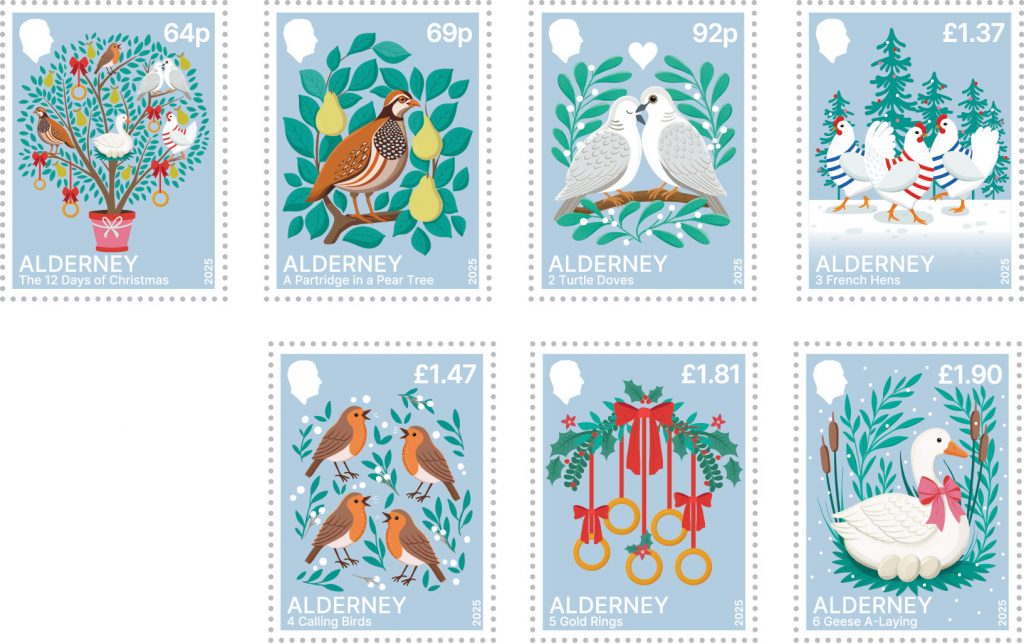 Bridget Yabsley, head of philatelic at Guernsey Post, said: – “The Twelve Days of Christmas is such a joyful carol, and we’re delighted to see it brought to life across this year’s stamps. Together, the Guernsey and Alderney stamps provide a complete visual interpretation of this timeless carol, offering collectors and senders a festive series that spans all 12 verses. We hope they will bring a touch of Christmas magic to the cards and letters sent around the world this season.”